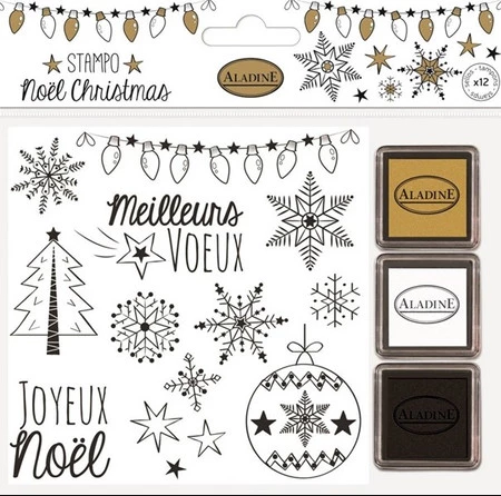 Zestaw 12 gumowych stempelków z piankowymi rączkami i 3 gąbeczek z tuszem do papieru. Wzory w tematyce Bożego Narodzenia pozwalają na ozdobienie świątecznych kartek, prezentów lub papierowych ozdób na choinkę. Stempelki są ułożone w arkuszu piankowym co ułatwia przechowywanie. 2 stempelki ze świątecznymi hasłami są w języku francuskim. Wymiary arkusza ze stempelkami 11,2x11,2 cm. Wymiary gąbeczki z tuszem 2,4x2,4 cm, kolory: złoty, biały, czarny.Potrzebujesz pomocy? Masz pytania?Zadaj pytanie a my odpowiemy niezwłocznie, najciekawsze pytania i odpowiedzi publikując dla innych.