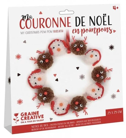Zestaw do stworzenia uroczego wieńca Bożonarodzeniowego z pomponów. Zestaw zawiera tekturowe kółka do zrobienia pomponów, włóczkę, oczy, pompony, wyciory, piankowe elementy, bazę kartonową wieńca i wstążkę do zawieszenia. Pompony wykonujemy zgodnie z instrukcją obrazkową zamieszczoną na odwrocie pudełka. Gotowy wieniec będzie miał wymiary około 25x25 cm. (Zestaw nie zawiera kleju potrzebnego do zamocowania drobnych elementów). Nieodpowiednie dla dzieci w wieku poniżej 36 miesięcy.Potrzebujesz pomocy? Masz pytania?Zadaj pytanie a my odpowiemy niezwłocznie, najciekawsze pytania i odpowiedzi publikując dla innych.