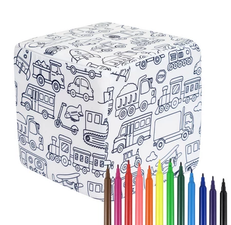 Kostka o wielkości 20 cm to miękka, wysokoelastyczna pianka oraz zdejmowany pokrowiec, który możesz wielokrotnie kolorować. Dzięki możliwości łatwego spierania kolorów kostka może służyć na wiele sposób i przy wielu okazjach.