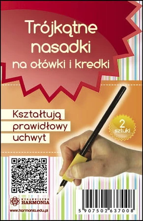 TRÓJKĄTNE NASADKI NA OŁÓWKI I KREDKI Kształtują prawidłowy uchwyt (2 sztuki)