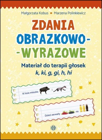 Prezentowany zestaw ćwiczeń logopedycznych „Zdania obrazkowo-wyrazowe” to bardzo dobrze przygotowany komplet wyrazów i zdań, który logopedzi oraz rodzice mogą wykorzystać w zabawach z dziećmi w celu utrwalenia poprawnej wymowy głosek k, ki, g, gi, h, hi. Zeszyt zawiera kilka grup zadań: służące utrwalaniu poprawnej wymowy głosek w różnych pozycjach w wyrazach oraz zdaniach, ćwiczenia umiejętności różnicowania fonemów, ćwiczenia kinestezji mowy. Propozycje te mogą służyć nie tylko do utrwalania właściwej artykulacji ćwiczonych głosek, ale również do kształtowania kompetencji językowych na poziomie semantycznym i składniowym. Na szczególne podkreślenie zasługuje ciekawa forma graficzna ćwiczeń. Dziecko nie musi tylko powtarzać zdań po logopedzie, ale samo przyczynia się do ich tworzenia, rozpoznając kolejne zdjęcia.