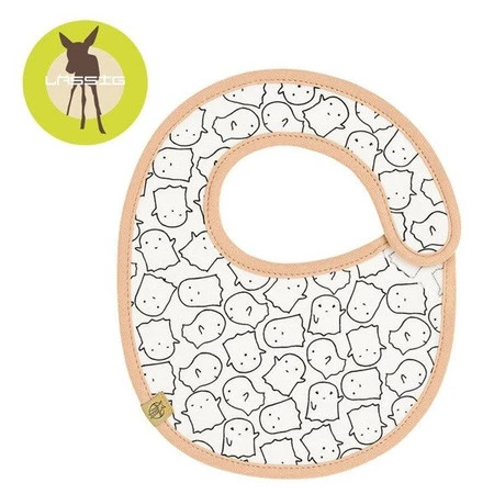 - Miękki, bawełniany śliniak niemieckiej marki LASSIG w kolorze białym z motywem przyjaznego duszka.