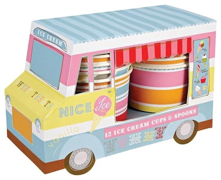 Czytaj więcejPapierowa dekoracja na stół. Zawiera: 12 kubeczków na lody (pojemność: 230 ml) oraz 12 drewnianych łyżeczek. Wymaga samodzielnego złożenia. Przybliżone wymiary złożonego produktu: 23 x 10 x 10.