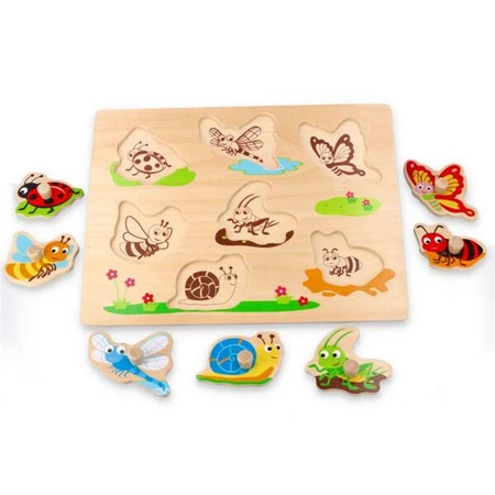 Wspaniała zabawa w układanie robaczków i owadów. Dzięki specjalnym uchwytom małe rączki jeszcze lepiej poradzą sobie z dopasowywaniem kształtów.