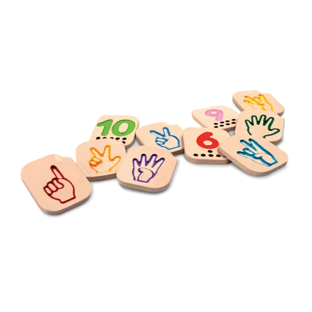 Ćwicz podstawowe umiejętności języka migowego, ucząc się liczb od 1 do 10 Odwzoruj każdy element z cyfrą palcem, aby poprawić sprawność ruchową i koordynację ruchowo-wzrokową Wprowadź drewniane płytki do środowiska naukowego, aby zwiększyć możliwości edukacyjnej zabawy Zestaw jest wytwarzany w Tajlandii z użyciem naturalnego kauczuku wolnego od chemikaliów, kleju bez formaldehydu, organicznych barwników i farb na bazie wody.