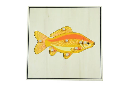 - Drewniana układanka edukacyjna przedstawiająca budowę ryby oraz jej szkielet.