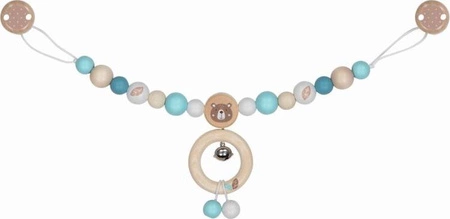 Drewniana zawieszka do wózka z klipsami miś niebieski Goki