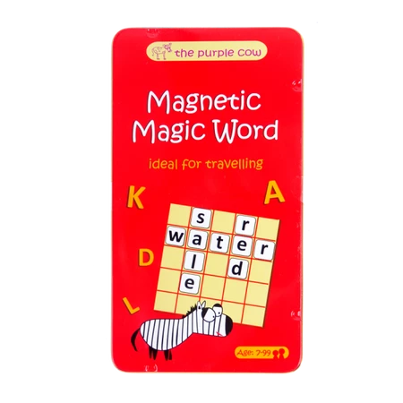 Magnetyczna gra Magiczne Słowa to ciekawa propozycja dla osób, które dużo podróżują. Seria mini gier magnetycznych the purple cow zmieści się do każdej torebki. Gra mało waży, dzięki czemu zawsze możemy ją mieć pod ręką. Sprawdzi się podczas czekania na wizytę u lekarza, w dłuższej podróży samochodem czy samolotem. Metalowe pudełko służy nam za planszę, dzięki czemu gabaryt gry ograniczony jest do minimum.