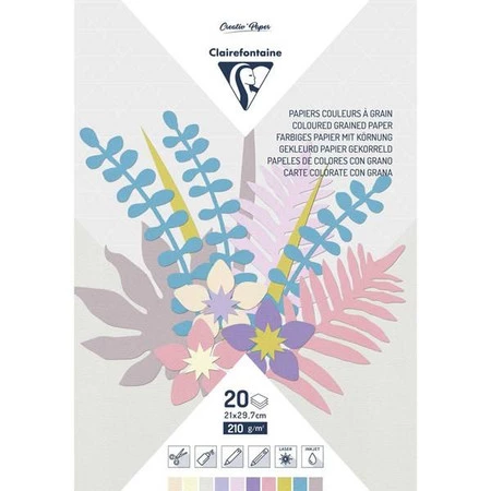 Rozmiar A4 (21x29,7 cm), 20 kartek o gramaturze 210 g/m^2 (10 pastelowych kolorów).