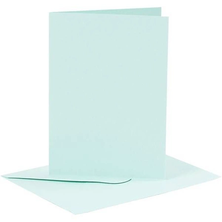 Zestaw 6 otwieranych kartek do ozdobienia i 6 kopert. Kartki w jednolitym kolorze z kartonu (o gramaturze 220 g/m^2) z dopasowanymi papierowymi kopertami (o gramaturze 110 g/m^2). Bez kwasów i ligniny – nadają się do scrapbookingu. Nieodpowiednia dla dzieci w wieku poniżej 36 miesięcy. Wymiary kartki 10,5x15 cm (A6), wymiary koperty 11,5x16,5 cm (C6). Made in China.