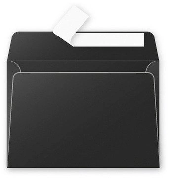 Koperta C6 w czarnym kolorze. Koperta posiada pasek samoklejący. Koperta wykonana jest z papieru barwionego w masie o wysokiej gramaturze 120 g/m².