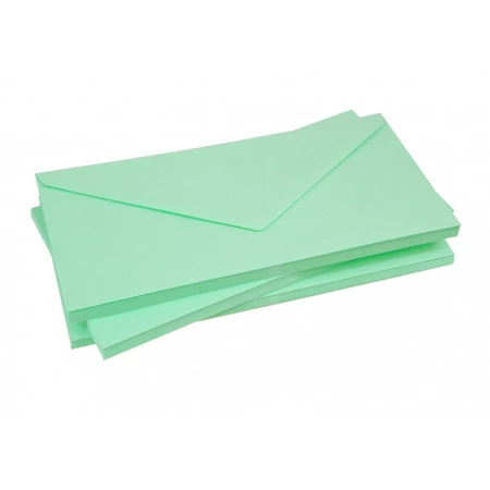 * Rozmiar : DL * Kolor : Zielony pastelowy * Zamykanie koperty : NK - klej na górnej klapce aktywuje się pod wpływem wilgoci * Gramatura 100 g/m2 * Kupujesz : 10 szt * Środek w kolorze koperty