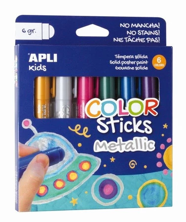 - Farby w sztyfcie marki Apli Kids w 6 metalicznych kolorach.