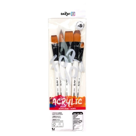 Długie rączki z drewna. Włosie jest bardzo miękkie, dzięki czemu nie pozostawia wyraźnych smug. Świetnie nadają się do farb akrylowych, ale można ich użyć również do farb akwarelowych i olejnych.