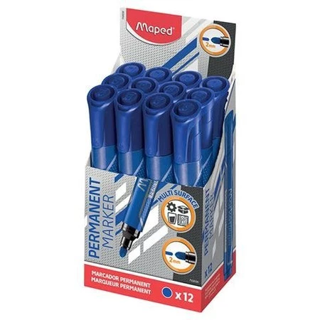 Marker permanentny MARKER'PEPS, tusz permanentny na bazie alkoholu. Szybkoschnący. Odporny na działanie światła. Plastikowy korpus w kolorze tuszu. Pozostawiony bez skuwki, nie zasycha przez 5 dni. Blokowana, okrągła końcówka. Szerokość linii pisania 2mm. Bezpieczna wentylowana skuwka. Do stosowania na większości powierzchni: papier, karton, metal, plastik, szkło. Produkt bezpieczny, wyprodukowany zgodnie z obowiązującymi normami. Kolor niebieski.