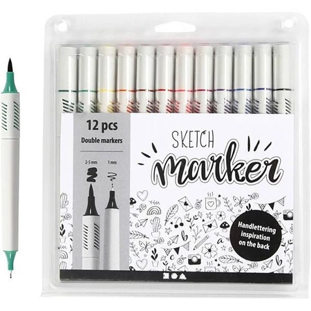 Dwustronne markery do szkicowania i ilustracji. W opakowaniu znajduje się 12 sztuk.