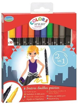 - Markery z dwoma końcówkami - Zestaw 10 markerów z dwoma końcówkami (flamastrowa i cienkopisowa).
