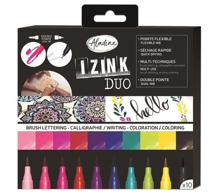 - Zestaw 10 markerów z 2 końcówkami - filcowym pędzelkiem i cienkopisem.