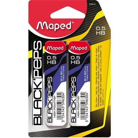 Grafity BlackPeps Hi-Polymer 0,5mm o twardości HB. Trwałe i bardziej odporne na złamania niż standardowe grafity. Etui zawiera 12 grafitów. 2 etui na blistrze. JS 1 blister.Podmiot odpowiedzialny za ten produkt na terenie UE
