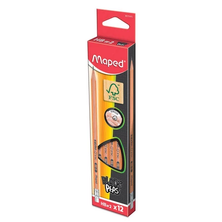 Ołówek BLACKPEPS HB z gumką, wykonany z drewna lipowego, ergonomiczny, trójkatny kształt, odporny na złamania grafit, czytelne oznaczenie twardości. JS pudełko 12 szt.Podmiot odpowiedzialny za ten produkt na terenie UE