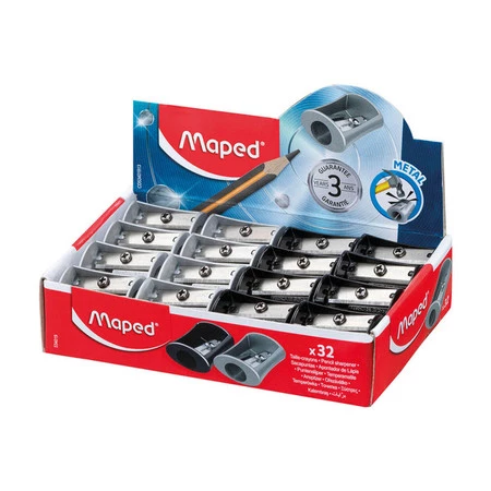 Niewielka i solidna temperówka metalowa SATELLITE o obłym kształcie, jeden otwór. Mix kolorów srebrny i czarny.