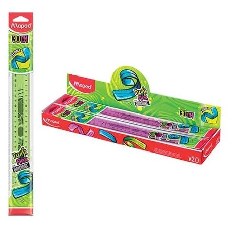 - Linijka Maped Twist'N Flex - giętka, niełamliwa w pełni odporna na złamania, ze skalą po obu stronach, 30 cm.