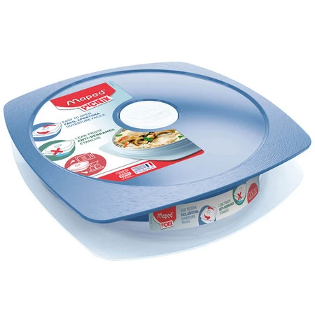 Pudełko Maped Picnik z serii Concept Adults to idealne połączenie dwóch funkcji: bezpiecznego przenoszenia posiłku i komfortowego jedzenia, niezależnie od miejsca. Gwarantuje to kształt pudełka, po zdjęciu pokrywki przypomina talerz z zaokrąglonymi rogami. Pudełko ma zakręcaną pokrywkę, wzmocnioną uszczelką, dlatego jest tak szczelne i zabezpiecza posiłek przed wylaniem czy wysypaniem. W całości wykonane jest z wysokiej jakości tworzywa, wolnego od szkodliwego BPA. Pudełko jest wytrzymałe, nie odkształca się i nie łamie w łatwy sposób. W całości poddaje się recyklingowi. Nadaje się do przechowywania w lodówce, podgrzewania w mikrofalówce i zmywania w zmywarce. Doskonały dla dorosłych i młodzieży, praktycznie dla każdego. Sprawdza się w pracy, w szkole, w podróży i na weekendowych piknikach. Pudełko stanowi element zestawu Concept Adults, w serii można dokupić również butelkę/ bidon, sztućce i torbę, w jednym z czterech kolorów. Wymiary: 20,5 cm x 20,5 cm x 5 cm, pojemność 900 ml. Kolor: niebieskiPodmiot odpowiedzialny za ten produkt na terenie UE