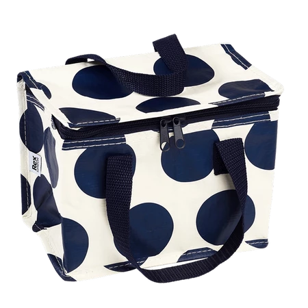 Torba termiczna na lunch, Kropki, granatowo-biała, Rex London