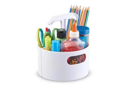 Łatwy do przenoszenia organizer jest idealny do użytku w domu i w klasie. Łatwy do trzymania uchwyt mieści łącznie trzy wyjmowane przegródki na przybory do pisania.