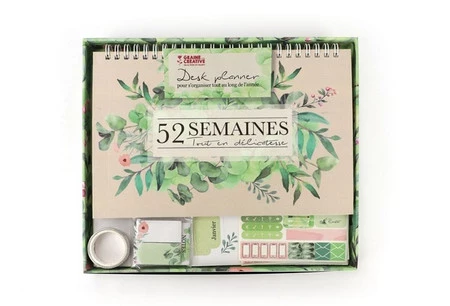 Zestaw desk planner zawiera: - notes (kalendarz) o wymiarach 23x15 cm z 60 stronami i sztywnymi okładkami, - 2 arkusze ze 103 naklejkami, - 12 zakładek z nazwami miesięcy, - 3 notesy z 30 karteczkami każdy, - 1 wzorzysta samoprzylepna taśma. Planer jest pięknie zaprojektowany w wiosennych kolorach. Na okładce i na kartkach znajdują się motywy roślinne i kwiatowe. Wewnątrz znajdzie się miejsce na zaplanowanie spotkań, czynności, czy zadań. Można zapisać najważniejsze daty w miesiącu, przyczepić pamiątki lub zdjęcia. Dołączone naklejki pomogą obrazowo oznaczyć nasze zapiski. Nieodpowiednie dla dzieci w wieku poniżej 36 miesięcy.