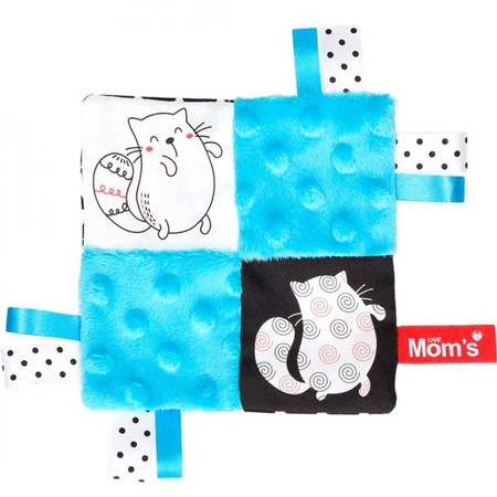 - Szmatka-przytulanka tzw. szeleścik z uroczym kotkiem i niebieskim Minky. Produkt polski od Mom's Care.