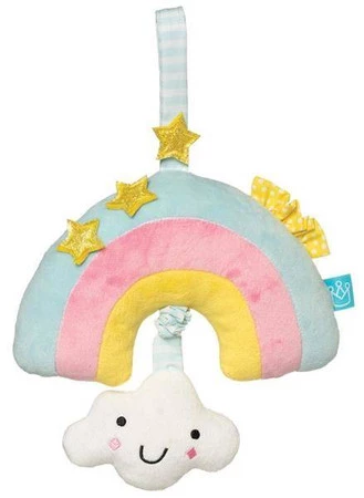 Kolorowa tęcza i sympatyczna chmurka wykonane są na najwyższym poziomie, z wysokiej jakości barwnych materiałów i przyjemnych w dotyku. Muzyczna zabawka od Manhattan Toy to wspaniały i bardzo praktyczny prezent dla niemowlaka, który na pewno rozweseli i urozmaici czas podczas długich spacerów.