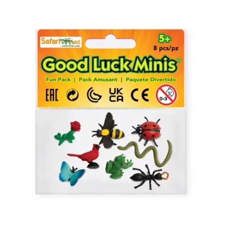 - Zestaw zawiera 8 mini figurek: żabkę, biedronkę, mrówkę, motylka, pszczółkę, węża, różę, ptaszka.
