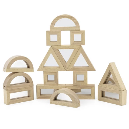- - zestaw składa się z 16 drewnianych dwustronnych klocków lustrzanych,