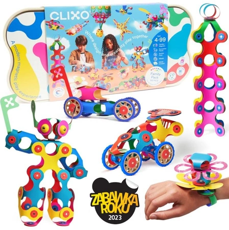 Wybierz Clixo Family Pack i podaruj swojej rodzinie największy, najbardziej wszechstronny zestaw do niekończącej się, kreatywnej zabawy magnetycznymi konstrukcjami!