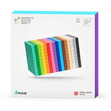 • Komplet 1600 szt magnetycznych klocków PIXIO w 16 różnych kolorach.