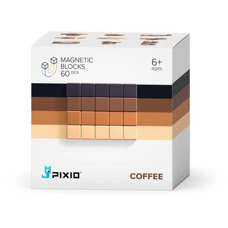 - Zajrzyj do pudełka PIXIO® COFFE, a znajdziesz 60 klocków magnetycznych w czterech kolorach: odcieniach brązu.