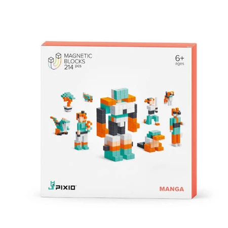 - Kupując ten zestaw otrzymasz 214 klocków PIXIO w 5 kolorach do zbudowania postaci Mangi.