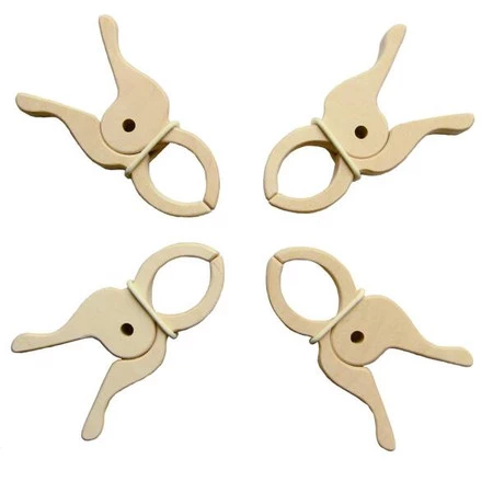 Zestaw 4 klipsów z drewna brzozowego z gumką idealnie sprawdzi się do budowania różnych konstrukcji z klocków Trigonos lub innych przedmiotów np. krzeseł, stołów, gałęzi. Można wykorzystać je do budowania domków, zamków, statków kosmicznych poprzez mocowanie prześcieradeł i koców do mebli lub klocków-patyczków. Dzięki temu, że można je szeroko rozwierać, nie podskakują tak, jak klasyczne spinacze do ubrań, więc świetnie nadają się również do zabawy na świeżym powietrzu, mocując tkaniny lub inne materiały do gałęzi drzew, drążków huśtawek. Bez problemu dopasowują się do średnicy grubości max 5,5 cm.