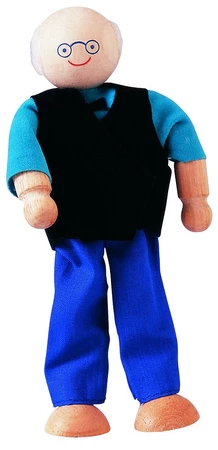- Drewniana figurka przedstawiająca postać z rodziny, Dziadka. Laleczka pasuje do rodziny lalek i drewnianych domków do zabawy Plan Toys®