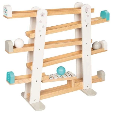 Tor kulkowy z ksylofonem wykonany z litego drewna zachęci twoje dziecko do zabawy przez wiele godzin. Bieg piłki nigdy nie przestanie zaskakiwać najmłodszych.