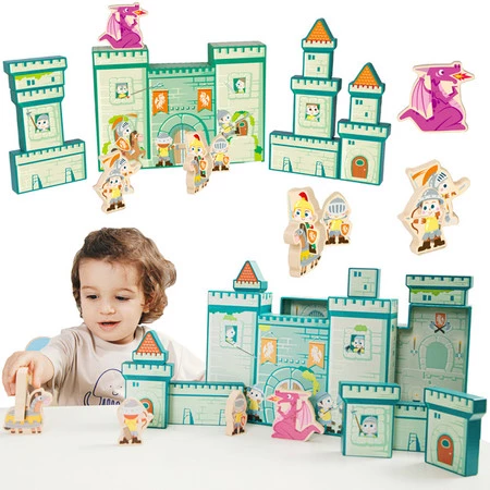Makieta Zamek Smok od renomowanej marki Classic World to idealny zestaw dla Wielkich Wojowników, którzy odważnie będą walczyć ze smokiem. Zestaw zawiera 16 drewnianych elementów Dziecko będzie mogło bawić się klockami i budować zamek, aby obronić miasto przed złym smokiem. Za pomocą wyobraźni dzieci mogą opowiadać własne historie o swoich dzielnych czynach. Produkt świetny do zabawy w grupie.