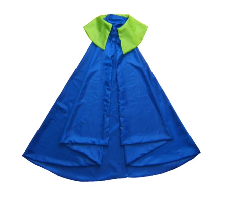 - Niebieska peleryna dla dorosłych z zielonym kołnierzem.