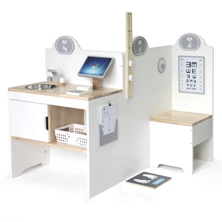 Wielofunkcyjne Centrum Medyczne od znanej i cenionej marki Viga to wspaniała zabawka, która pozwoli Twojemu dziecku poznać bliżej zawód lekarza czy pielęgniarki. Zestaw zawiera gabinet lekarski, poczekalnie, umywalkę i recepcję. Dodatkowo dołączone zostały profesjonalne sprzęty medyczne takie jak: stetoskop, ciśnieniomierz, młotek refleksyjny, termometr, sprzęt do wykonania badań rentgenowskich, strzykawki, tabletki, opakowania na pigułki. Dzięki zabawie możemy bliżej wyjaśnić dziecku na czym polega praca lekarza, możemy odgrywać rolę doktora, pielęgniarki czy pacjenta. Idealny sposób, aby przybliżyć dzieciom przebieg wizyty u lekarza, zwłaszcza tym, które boją się wizyt w gabinecie lekarskim. Świetny produkt dla maluchów, które chcą w przyszłości zostać lekarzami. Zabawka idealna do odgrywania ról, pomaga rozwinąć u dzieci wyobraźnię oraz umiejętności społeczne. Przeznaczona dla dzieci powyżej 3 roku życia.