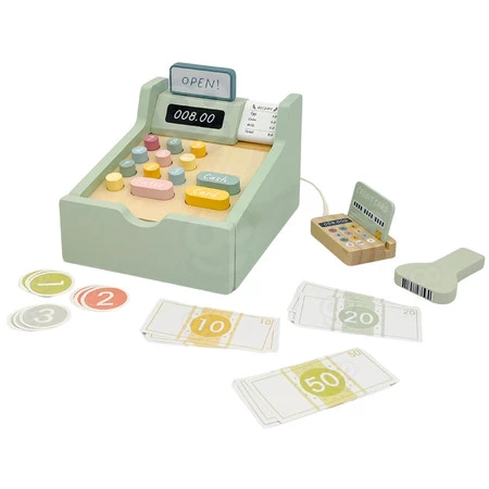 WOOPIE GREEN Drewniana Kasa Sklepowa Edukacyjna z Akcesoriami 23 el. FSC