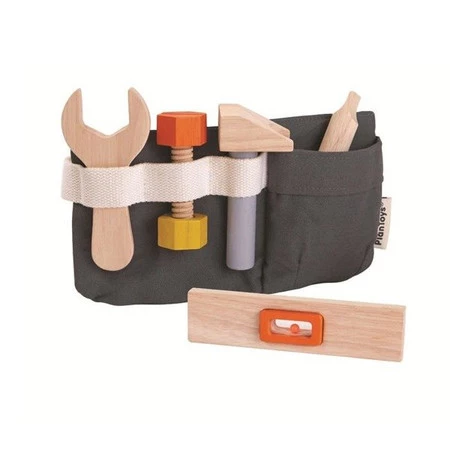 - Pas z drewnianymi narzędziami od renomowanego producenta drewnianych zabawek Plan Toys.
