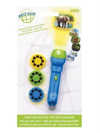 Projektor posiada źródło światła i regulowany obiektyw umożliwiający regulację ostrości. W zestawie znajdują się trzy tarcze ze slajdami, w każdym po osiem slajdów zwierząt.