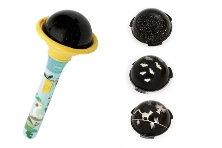 Za pomocą projektora dżungla z łatwością przeniesiesz się w świat roślin i zwierząt zamieszkujących gęstwiny. Projektor wyposażony jest w trzy wymienne obudowy w kształcie kopuły do wyświetlania na ścianie slajdów: gwiaździste niebo, dżunglę i nietoperze.