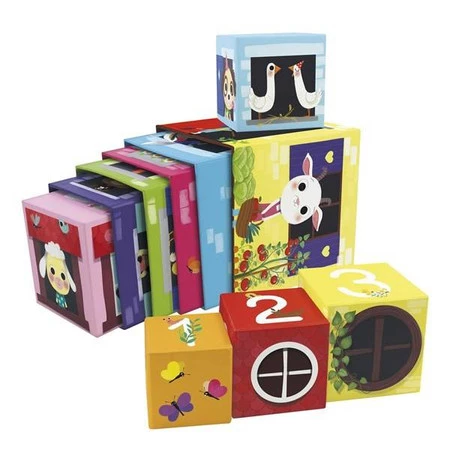 Wymiary piramidy po złożeniu: 15x15x105 cm - Wymiary kostek: od 15x15x15 cm do 6x6x6 cm.