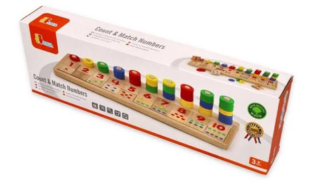 Na drewnianej podstawie umieszczonych jest 9 słupków, na które nakładamy ilość krążków opisaną poniżej. Każda cyfra ma inny kolor odpowiadający kolorowi krążków.